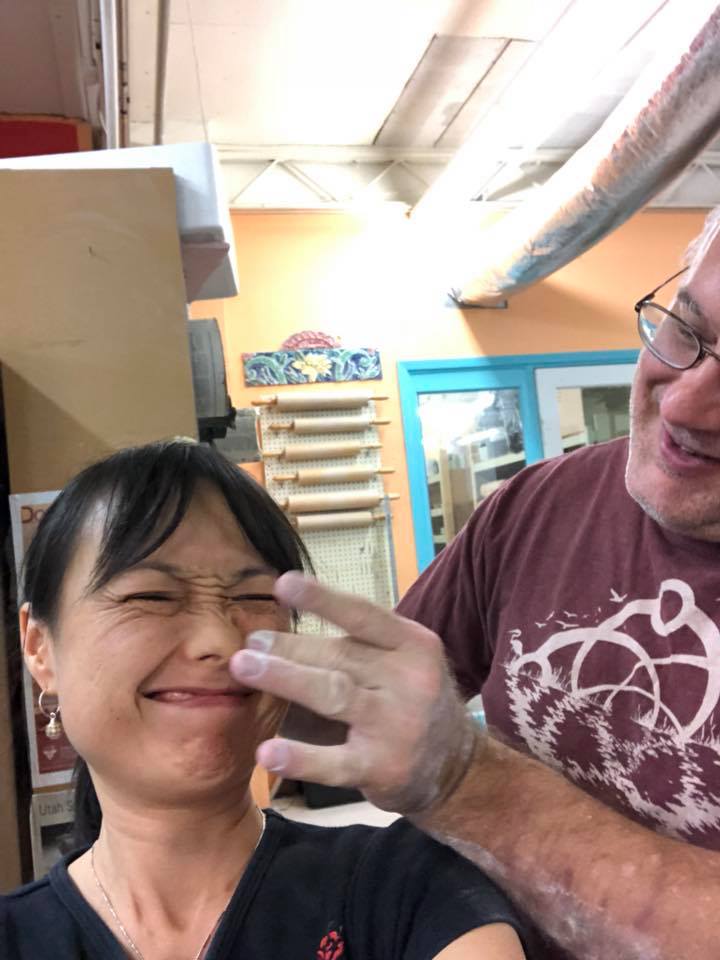 Being silly at pottery class