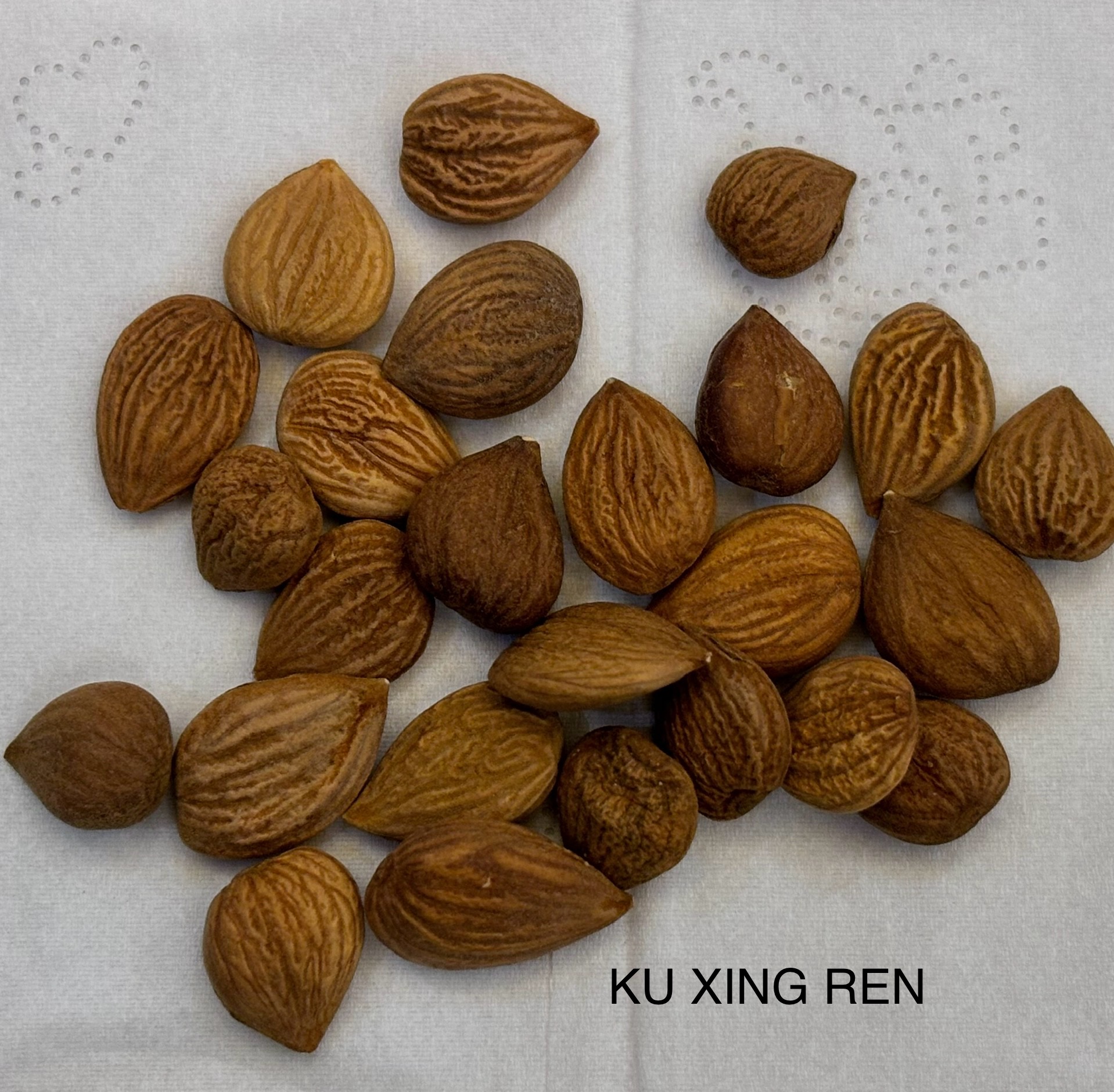 | English: Apricot Seeds Pinyin: Xing Ren Pharmaceutical: Semen Prunus armeniaca |